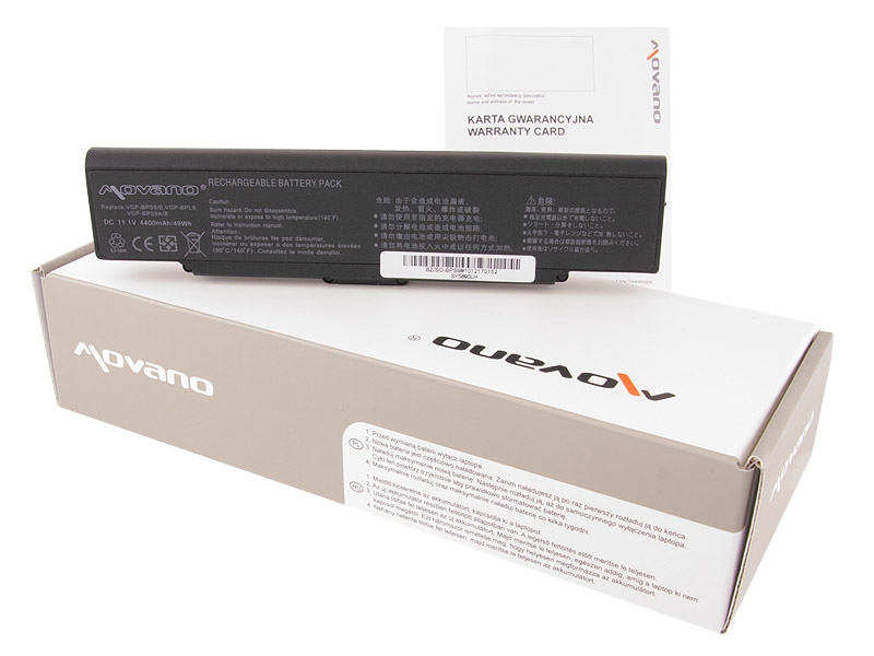Nowa bateria firmy Movano z certyfikatem jakości CE, ROHS. Akumulator wyprodukowany w oparciu o ogniwa litowo-jonowe klasy A+ marki Samsung używane przez czołowych producentów oryginalnych baterii do laptopów. Bateria wyposażona jest w zabezpieczenie chroniące ją przed: przepięciem, przegrzaniem, zwarciem, przeciążeniem prądowym, głębokim rozładowaniem oraz przeładowaniem.